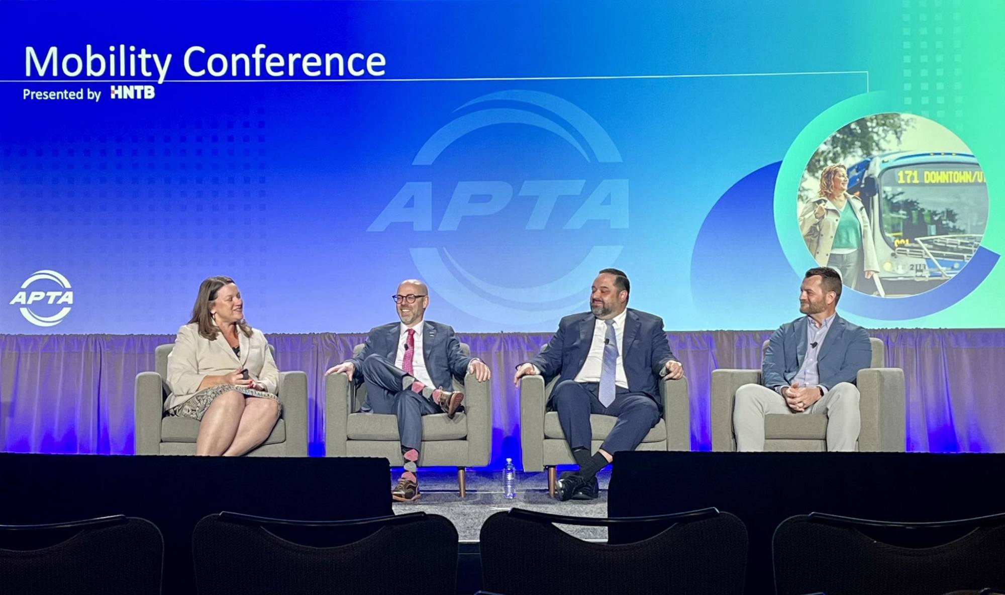 At APTA's 2025 Mobility Conference in Austin this week, Texas transit leaders Dottie Watkins of CapMetro, Rich Andreski from Trinity Metro, Eduardo Miranda, Jr. of Houston METRO and SWTA Vice Chair Chris Mandrell of Citibus Lubbock were featured in a general session on transit in the Lone Star state. Great job, crew!