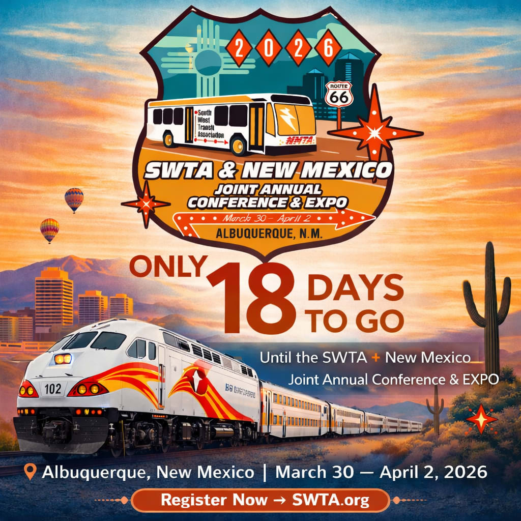 As excitement continues to build, the South West Transit Association (SWTA) and the New Mexico Transit Association (NMTA) have released early highlights from this year’s conference program, giving attendees a preview of the learning, collaboration, and innovation that will take place during the four-day event.